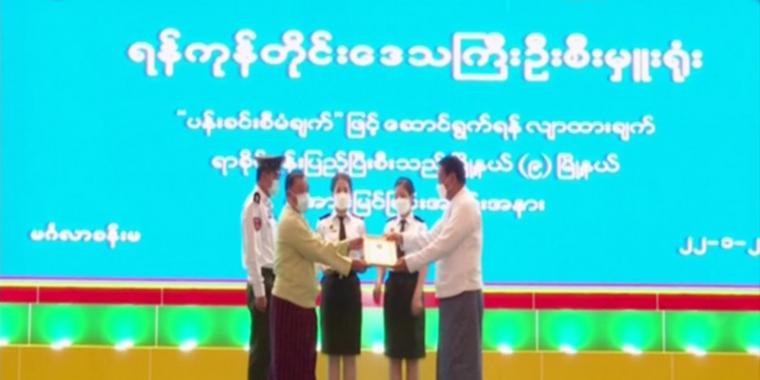 Also, Yangon Region Chief Minister explained plans and assistance for the successful implementation of the Pan Khin Project. This Ceremony continued with presenting certificates of honour to the 9 townships which are Puzundaung, Kyauktada, Pabedan, Latha, Lanmadaw, Ahlon, Dagon, Seikkyi Khanaungto and Kokokyun.