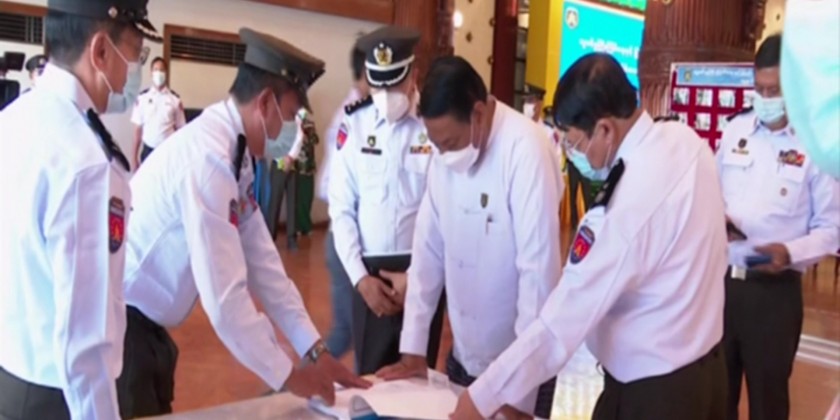 Union Minister for Immigration and Population U Khin Yi attended a ceremony to honour 9 townships of Yangon Region which successfully implemented the Pan Khin Project issuing National Registration cards and household lists.