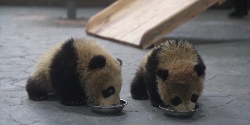 Giant panda twin cubs made their first public appearance at Shanghai Wild Animal Park, ahead of the Chinese New Year holiday. The panda twins will officially meet boarder public on Sunday and the park had made preparations for a surge of visitors during the holiday. The park had released a line of exclusive panda merchandise to mark their official public debut.