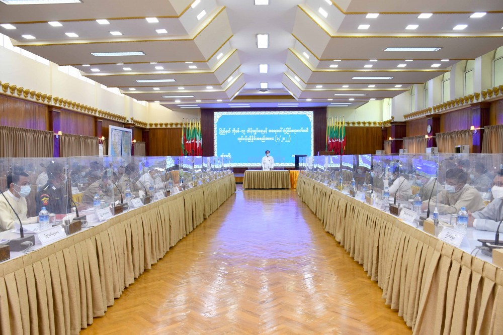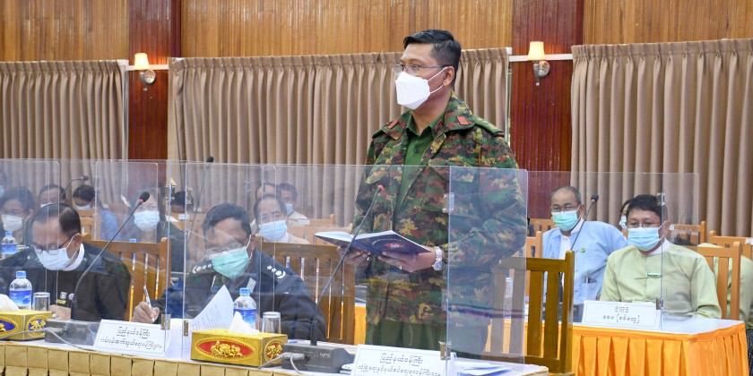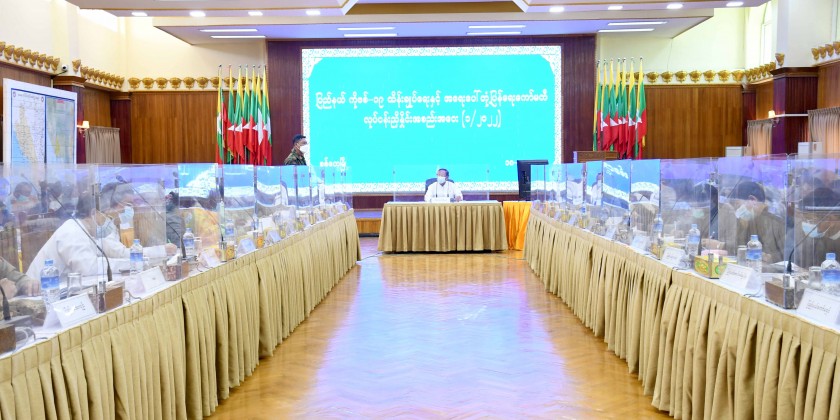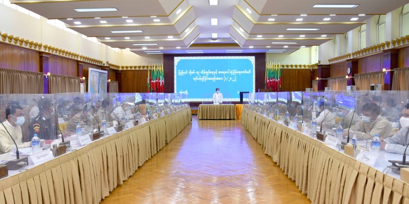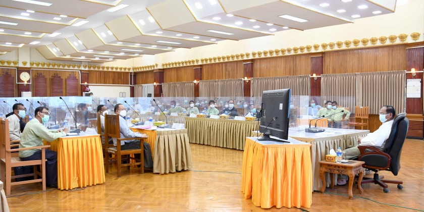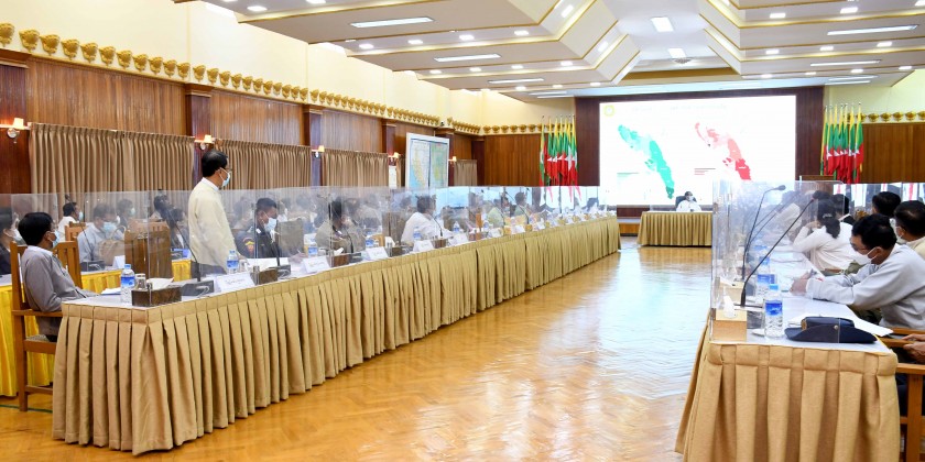 He called on government departments and civil society organizations to conduct public awareness on COVID-19 prevention and control activities in Rakhine State as much as possible. Later, the Secretary of the Committee, State Security and Border Affairs Minister reported directives of the Central Committee for Control and Emergency Response of COVID-19, outbreak of the disease in Rakhine State, receiving medical treatment for infected people and COVID-19 vaccination status.
