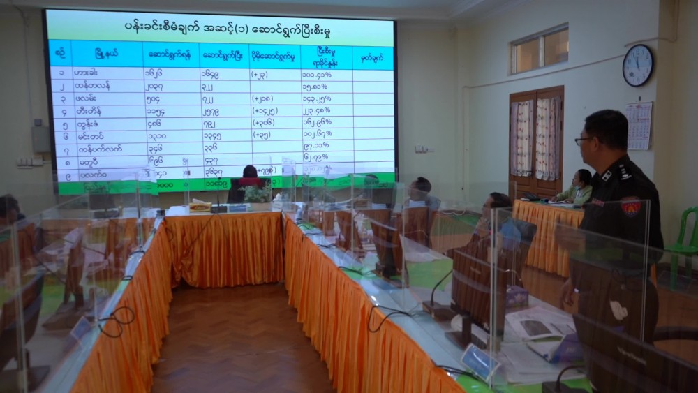 In response to the reports, the State Security and Border Affairs Minister and the secretary of the State Government supplemented to the reports on issuing the mask campaigns in a timely manner, wearing masks, social distancing, following COVID-19 rules and regulations as well as COVID-19 prevention and control measures. The State Social Affairs Minister also reported on completion of Pan Khin project and data entry process of household list form 66/6 on which the State Chief Minister and the Deputy Commander of the North-West Command coordinated essentials.