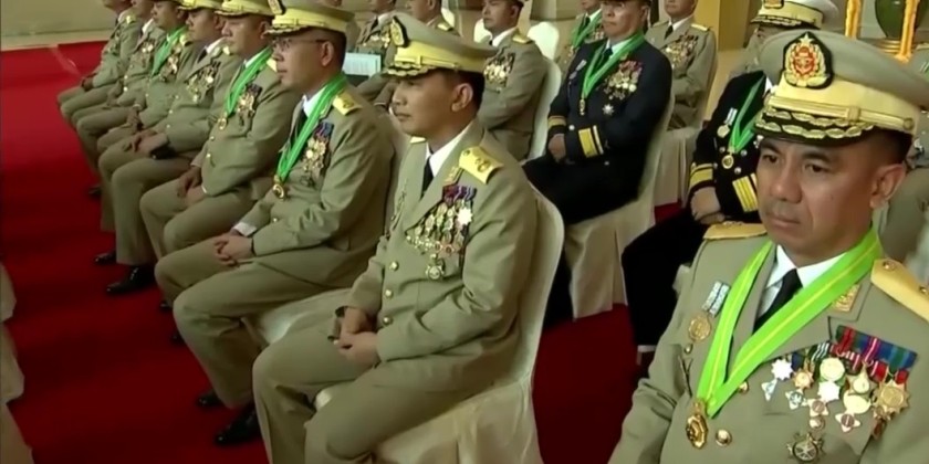 Subsequently, the Military Appointments General, Lt-Gen Zeya Kyaw Htin Htein Win, read out and presented the joint-appointment letter, confirming the joint-appointment of the Chief of General Staff (Army, Navy, Air) General Zeya Kyaw Htin Thray Sithu Kyaw Swer Lin as Deputy Commander-in-Chief of Defence Services, Commander in Chief (Army), of the Office of the Commander-in-Chief of Defence Services.