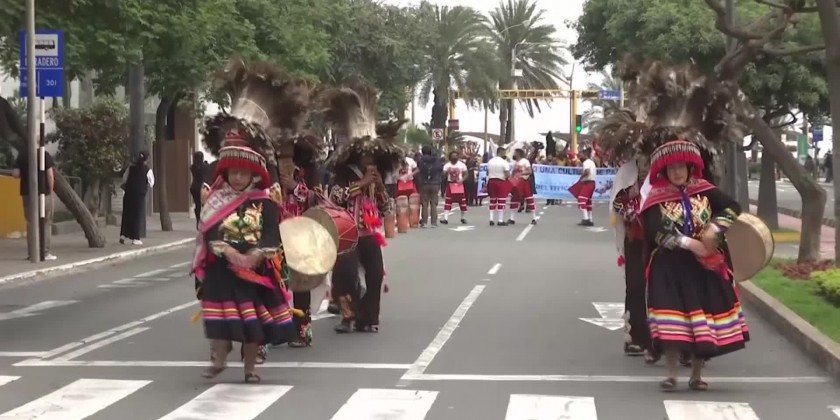 A colorful parade of people representing all corners of Peru performed traditional dances and rhythms on Tuesday, observing the World Day of Peace. Performers representing the Amazonic dances from Iquitos, the heritage of the Afro-Peruvian population, and the Andean cultures paraded through Miraflores municipality.