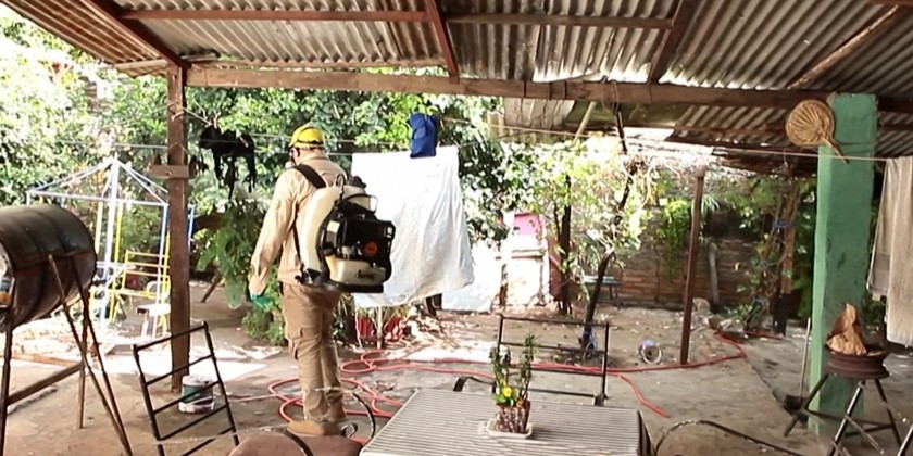 Paraguay's National Malaria Eradication Service is fumigating residents' homes in Lambare, during a house-to-house operation. The activity aimed at eradicating the Aedes Aegypti mosquito, which transmits dengue and chikungunya. Hospitals in Asuncion are receiving many patients with symptoms of dengue.
