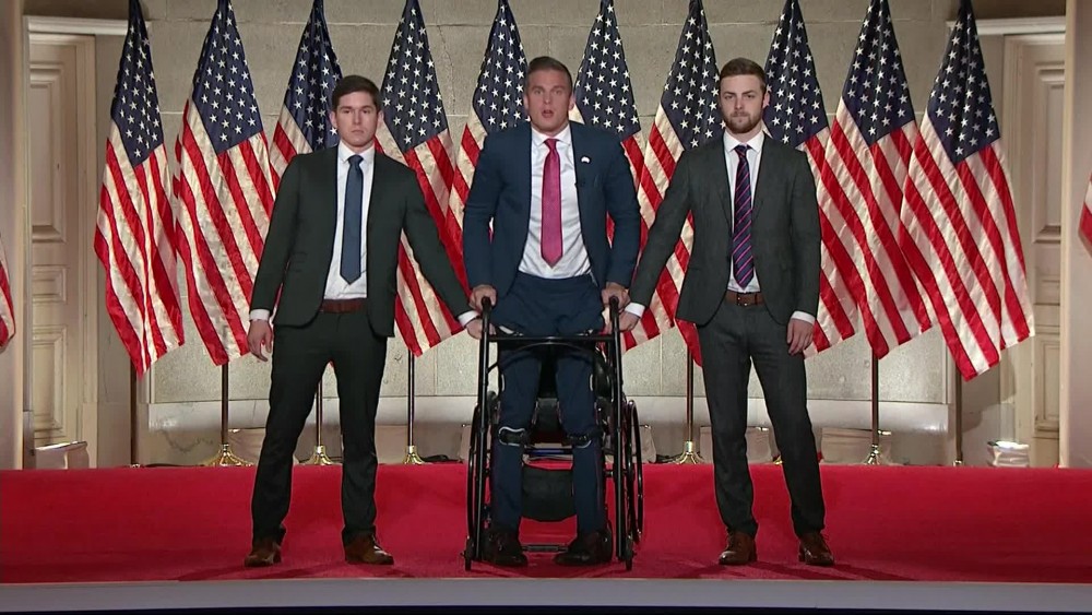 Madison Cawthorn, a 25-year-old Republican who is a candidate for a U.S. House seat from North Carolina, spoke to the Republican National Convention on Wednesday night. Cawthorn called for liberals to listen to other ideas and for conservatives to define what they believe in. Cawthorn also referred to civil rights leader Dr. Martin Luther King, Jr., who spoke about his dream of people being judged by the content of their character, not the color of their skin. He said millions of people who try to come to the United States share this dream. Cawthorn, who was badly injured in a car accident when he was 18, is paralyzed from the waist down and uses a wheelchair. He stood at the end of his address, which paraphrased the U.S. pledge of allegiance.