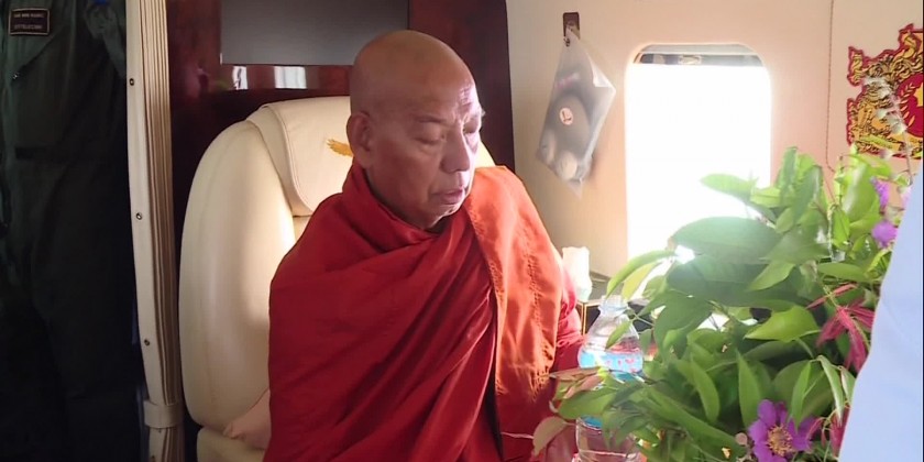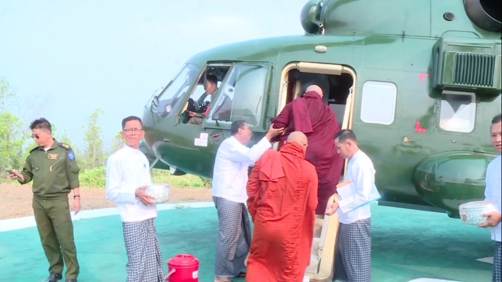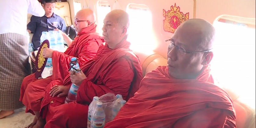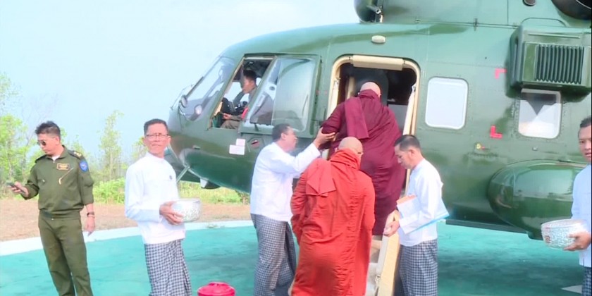 Led by Aung Si Thar Monastery presiding sayadaw, 6 members of Sangha took Tatmadaw Helicopter over Nay Pyi Taw Council Area and recited paritta.