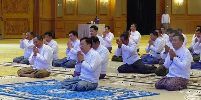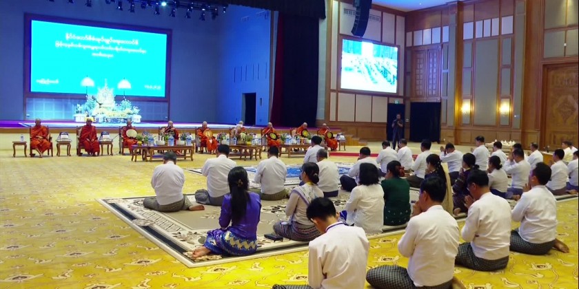 Then, the State Administration Council held a ceremony to listen to the Paritta Recitation at the Ngu Shwe Wah Hall of the State Adminstration Council Chairman’s Office.