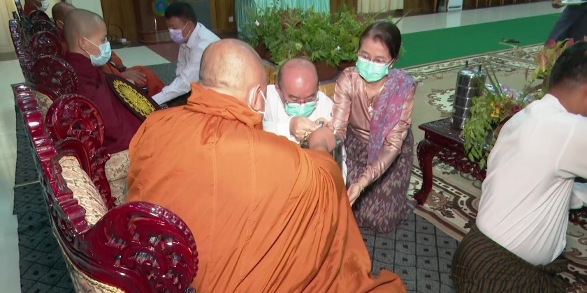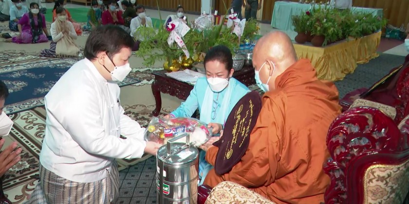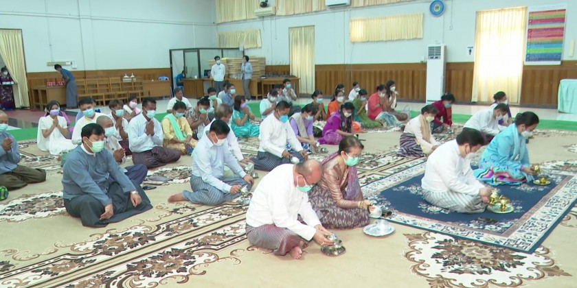 Union Minister Dr Thet Thet Khaing, Deputy Minister U Aung Tun Khaing and officials attended the ceremony, and received the five precepts from the Sayadaw of KoeKhanGyi Monastery.