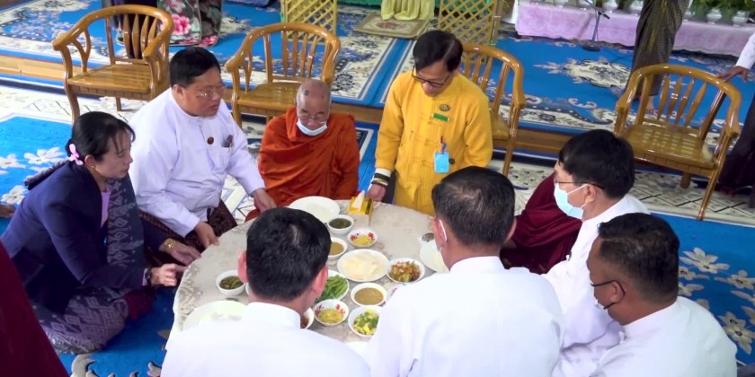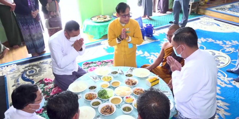 The ceremony began with religious norms including taking precepts from members of the Sangha. Shan State Chief Minister Dr. Kyaw Tun and officials offered offertories and cash to the members of the Sangha. The Ceremony came to an end with sharing the merits gained.
