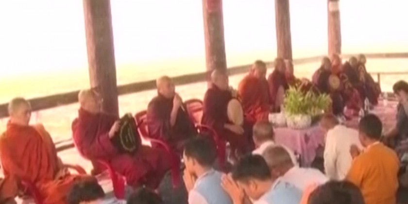 About 38 Sayadaws and monks recited parittas and religious suttas at 3 community halls on U Bein Bridge in Mandalay.