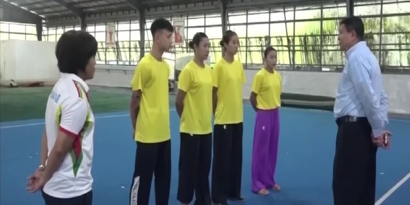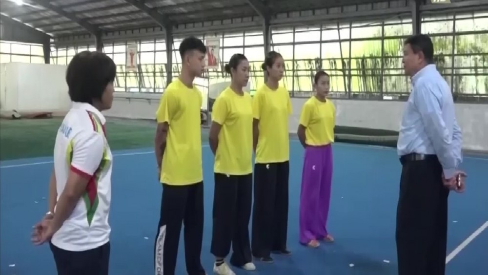 Chairman of Myanmar Olympic Committee Union Minister for Sports and Youth Affairs U Min Thein Zan met Wushu athletes who are camping in the Institute of Sports and Physical Education (Yangon) to participate in the Asian Games on Wednesday.