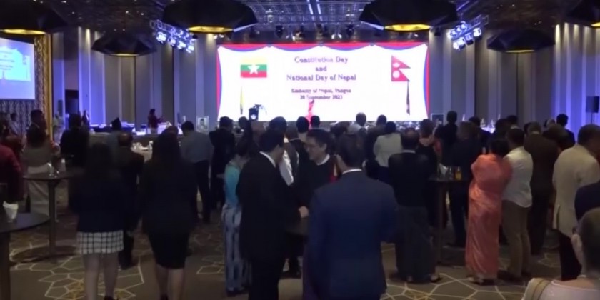 In the evening of that day, the Union Minister attended a ceremony to mark Constitution Day and National Day of Nepal at the Wyndham Grand Hotel in Yangon. At the event, Nepalese Ambassador to Myanmar Mr Harishchandra Ghimire extended greetings and the ceremony was opened with the National Anthems of Republic of the Union of Myanmar and Nepal and the traditional dances of Nepal were also staged at the event.