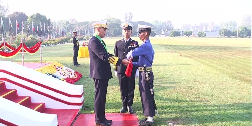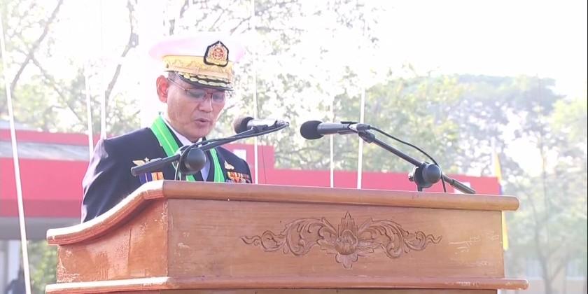 Passing Out Parade for 84th Intake of Defence Services (Navy) Junior Officer (Management) Course and 58th Intake of Defence Services (Navy) Junior Officer (Engineering) Course was held at the Parade Ground of Naval Training Command Headquarters in Thanlyin on Thursday.