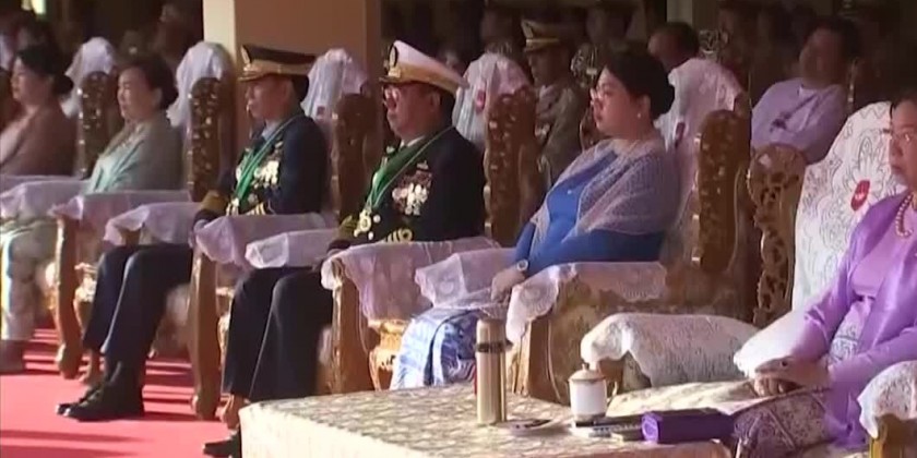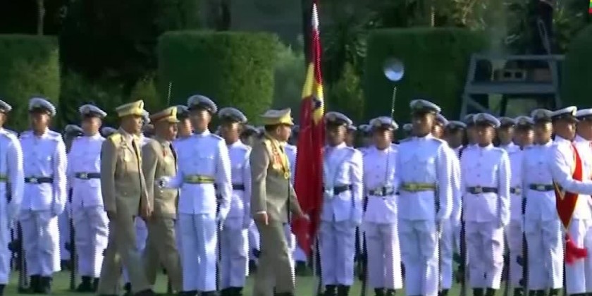 Also present at the ceremony together with the Senior General were Daw Kyu Kyu Hla, wife of the Senior General, Commander-in-Chief (Navy) Admiral Zeyya Kyaw Htin Sithu Moe Aung and wife, Commander-in-Chief (Air) General Zeya Kyaw Htin Sithu Tun Aung and wife, senior military officers from the Office of the Commander-in-Chief and their wives, Union ministers, the chief minister of Yangon Region, Commander of Yangon Command, Yangon mayor, commandant of DSMA, officials, officer instructors from studies and training departments of the academy as well as parents and guardians of cadets, and guests.