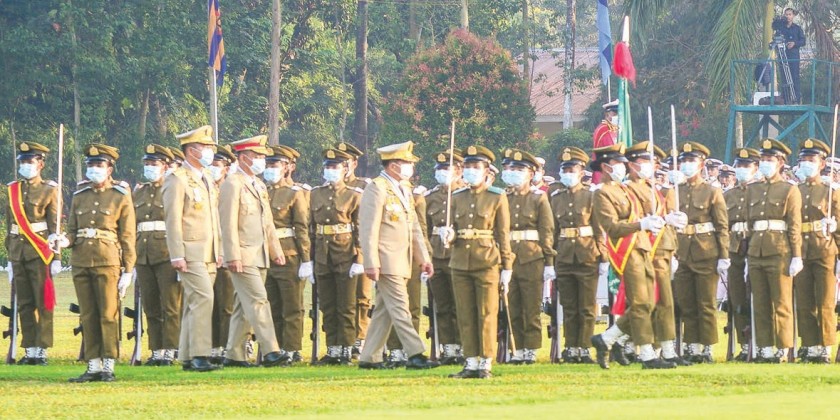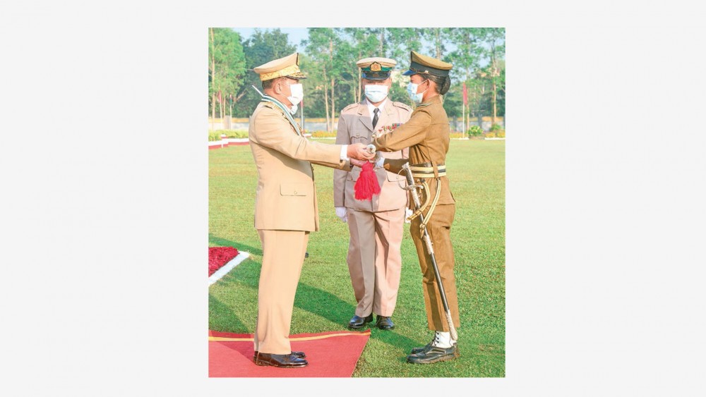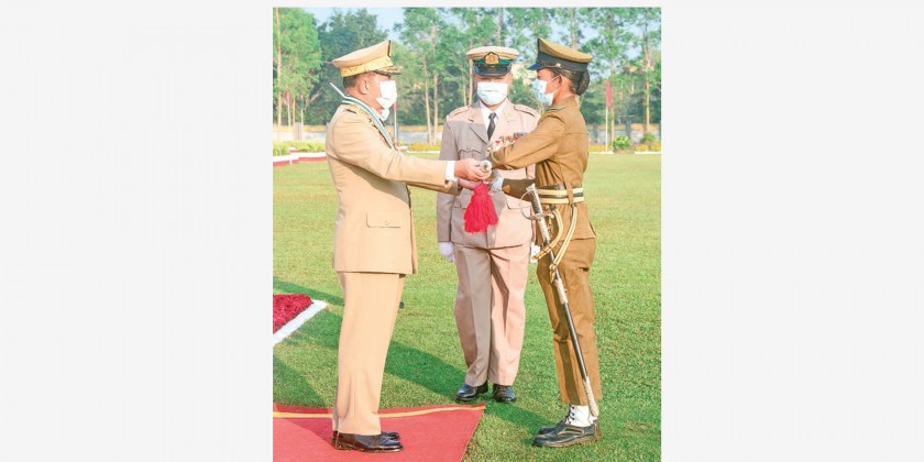 The Chairman of the State Administration Council Commander-in-Chief of Defence Services Senior General Maha Thray Sithu Min Aung Hlaing addressed the passing out parade of the 8th Intake of Graduate Female Cadet Course at the parade ground of the Defence Services (Army) Officers Training School (Hmawby) in Yangon Wednesday morning.