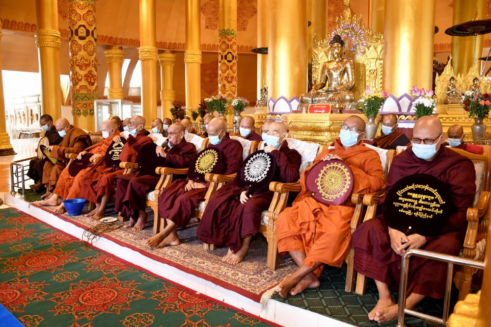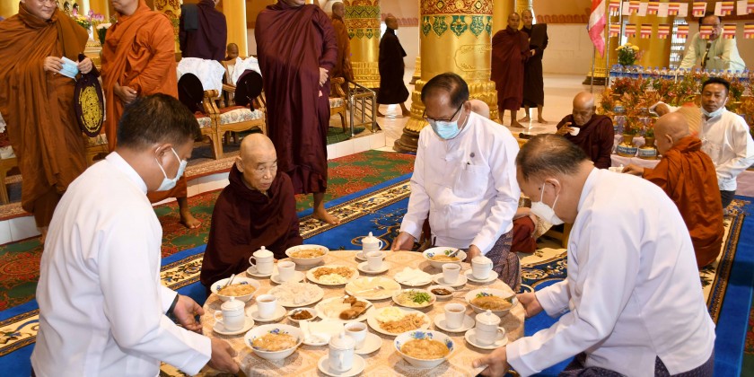 First, the SAC member Daw Aye Nu Sein, the State Chief Minister and officials donated dawn meal or Hsoon to the Sayadaws and monks led by the State Ovadasariya Sittway Nandar Rama Pariyatti Monastery Sayadaw Buddhanta Nanda Thiri .