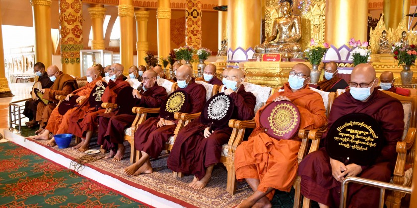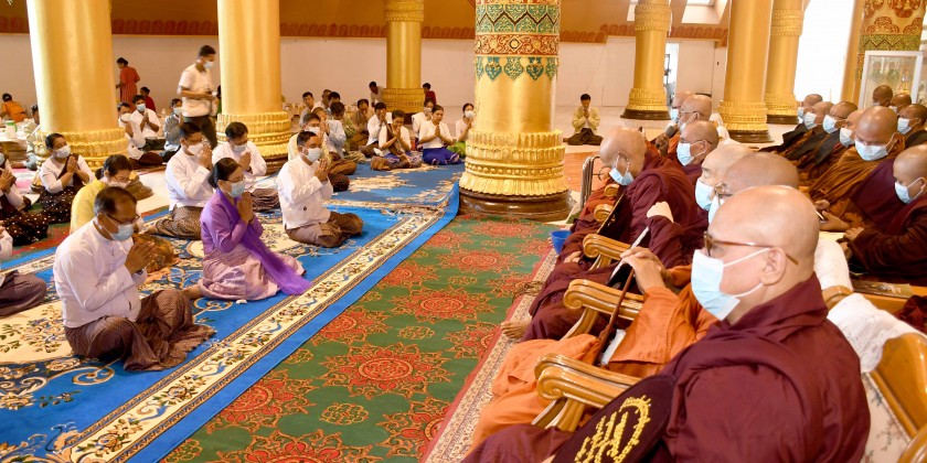 Later, the State Ovadasariya Sayadaws discoursed Ovada Gahta on the Pathana Sutta. Members of the Sanghas, the SAC member and congregation led by the Sayadaws then recited Maha Pathana Sutta.
