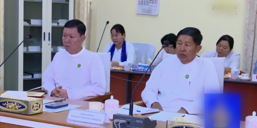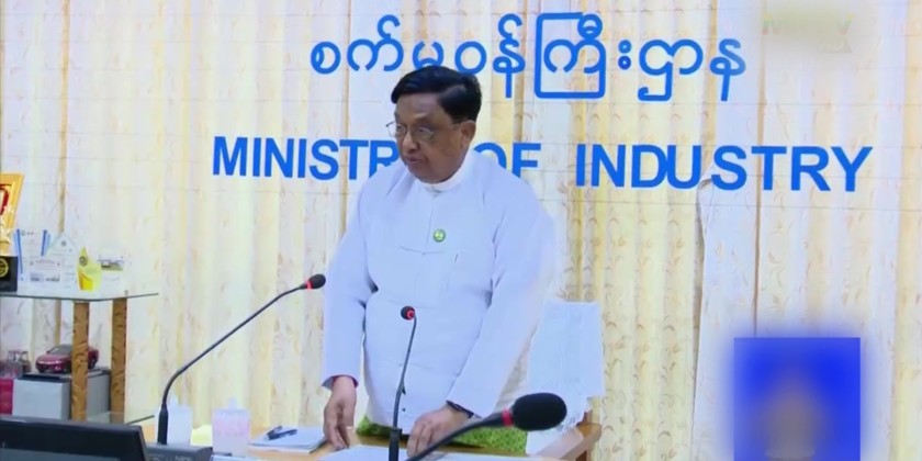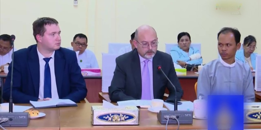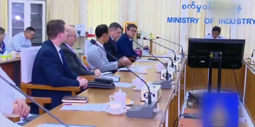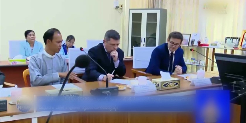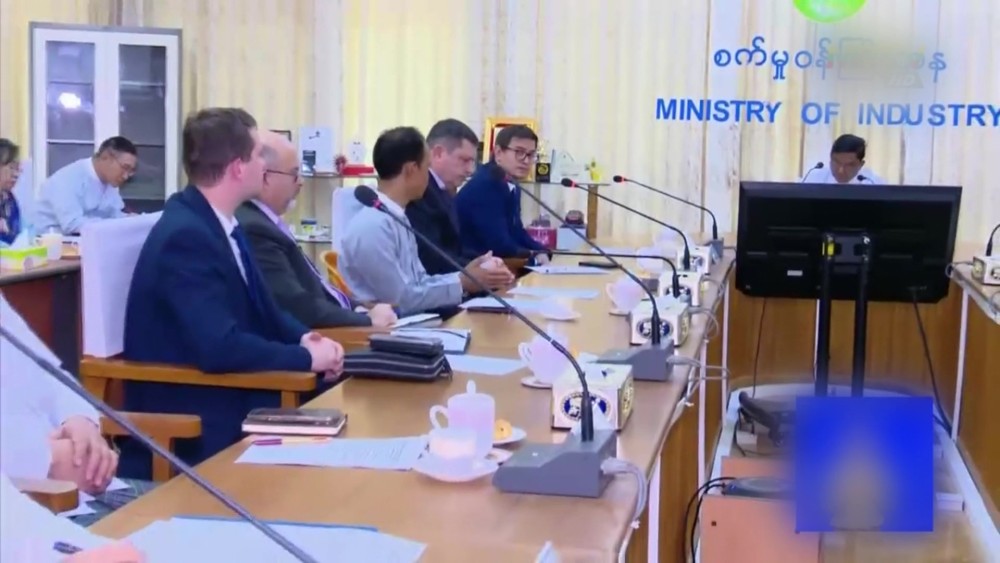 A delegation led by Mr. Pavel E. Saplin, representative of the Russian Federation's state-owned corporation Rostec, and Mr. Aleksandr Senin, Chief Engineer of Tyazhpromexport (TPE) Co., Ltd., paid a courtesy call to the Union Minister for Industry Dr. Charlie Than at the Ministry's Office No. (30) Meeting hall in the evening on December 2.