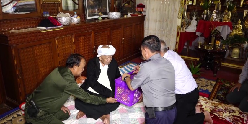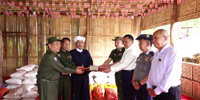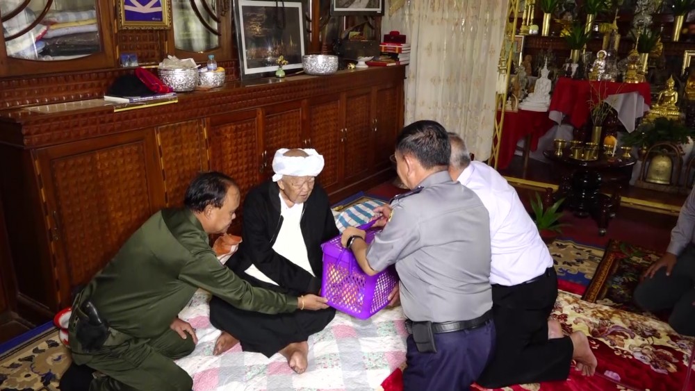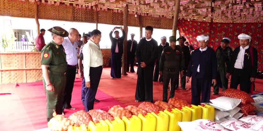 The Shan State Chief Minister U Aung Zaw Aye together with the State ministers paid courtesy visit to the Pa-O national leader patron of Pa-O National Organization (PNO) U Aung Kham Hti in Kyauk Ta Lone Gyi Town, Taunggyi Township at 11:30 on July 7, presented foodstuff and gifts and provided rice, cooking oil, onion, potato, chickpea and cash assistance for the development of Pa-O Special Region (6).