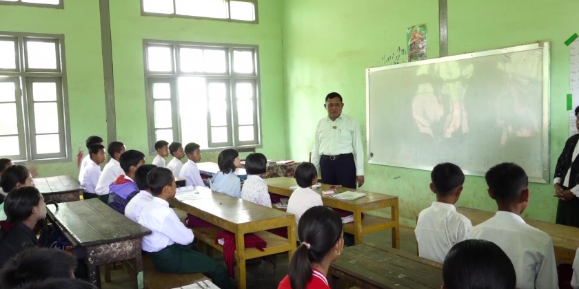 Next, the Chief Minister and State Ministers visited Kyauk Ta Lone Gyi Basic Education High School, gave words of encouragement to the students and provided cash assistance through the school principal.