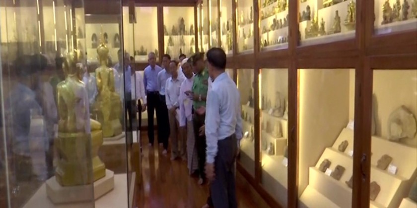 Afterward, the Prime Minister viewed the ancient works of Buddha images, jewelries and personal items displayed at the Shwe Maw Daw Pagoda Historical Museum and instructed to preserve the ancient works systematically.