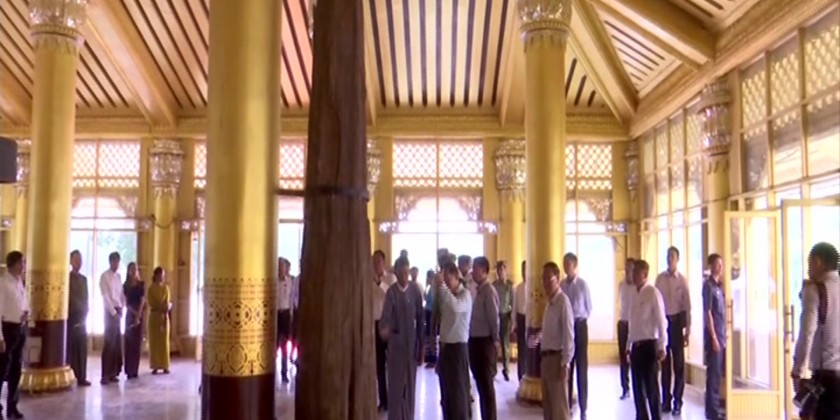 Then, the SAC Chairman and party visited Kanbawzathardi Palace viewed round the display of teakwood pillars excavated from the site of old royal audience hall, renovation works of the palace, displaying personel items used by the ancient kings in the palace museum, the ancient Buddha images and antiquities displaying in the Hanthawady archeological museum and the exhibitions in Bamarathana throne hall and the responsible officials clarified necessary matters.