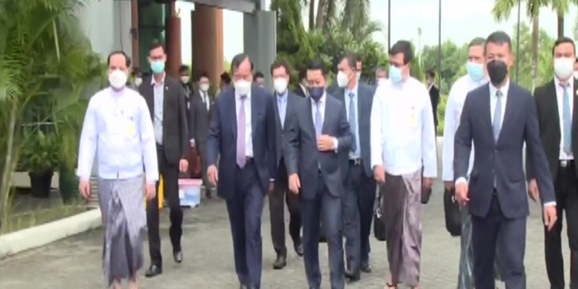 The special envoy of ASEAN Chair and Deputy Prime Minister of Cambodia Mr. Prak Sokhonn and delegates paid homage to Shwedagon Pagoda on Sunday morning.
