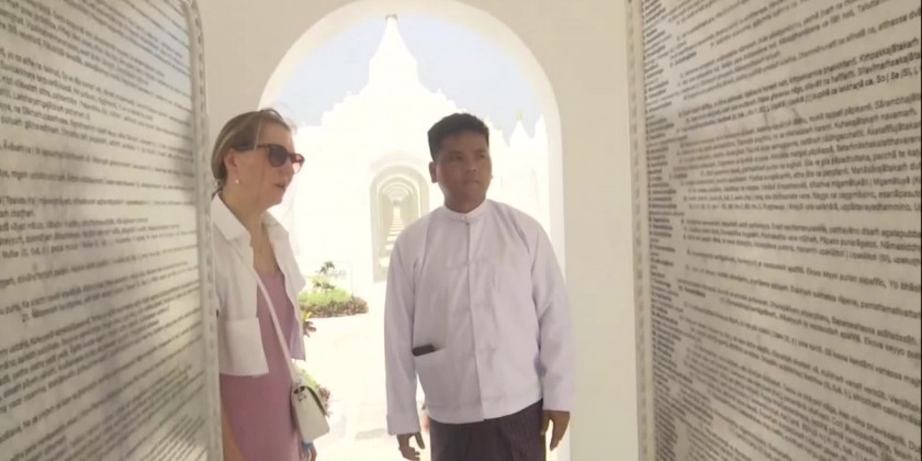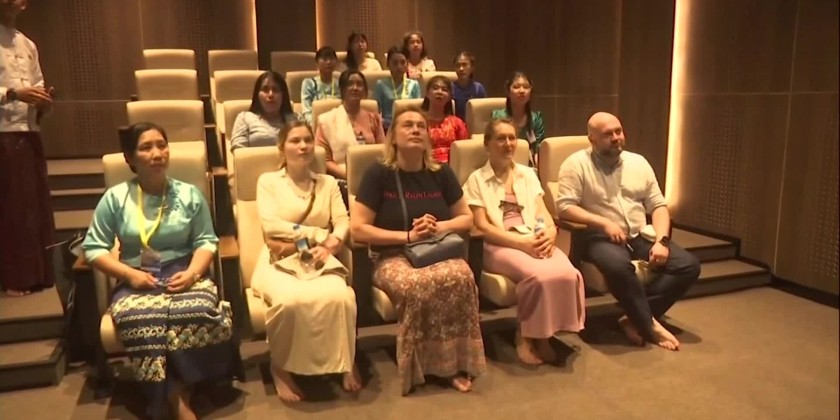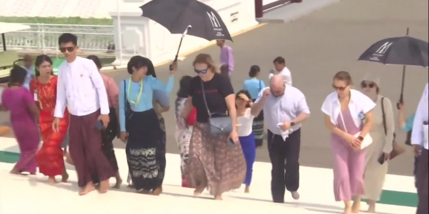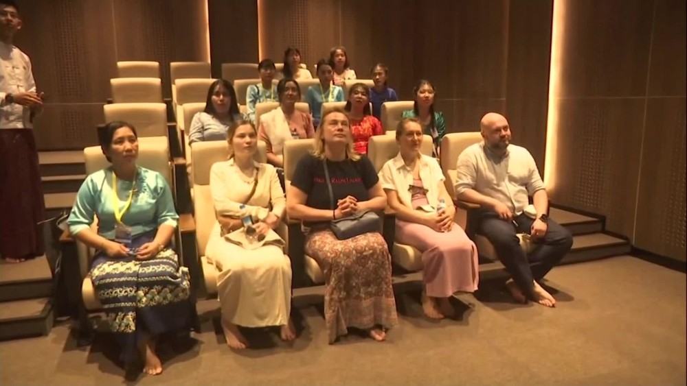 They first observed the process of successful construction of the Buddha Image through a video presentation. The delegation later paid homage to the Maravijaya Buddha Image and toured the Buddha Park, observing the repositories, archives, Aggadipadhi Sasana Beikmandawgyi, Stone Inscription Ceties, Muclinda Lake and other religious edifices.