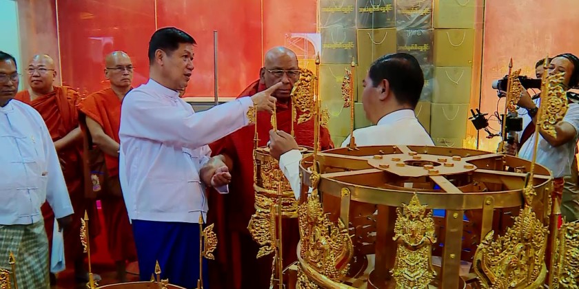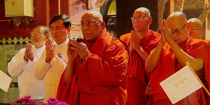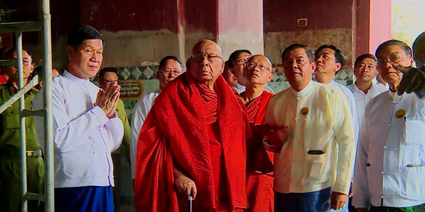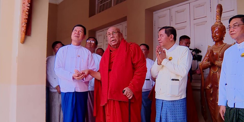 Mandalay Region Chief Minister, U Myo Aung, and members of Region Government paid respect to the State Ovadacariya, 16th Sangharaja of Shwe Kyin Sangha Niyaka, Chancellor of the Sitagu World Buddhist Universities and Sitagu Hospitals, Abhidhaja Maha Rattha Guru, Abhidhaja Agga Maha Saddhammajotika, Dr. Bhaddanta Ñāṇissara at the Mahamuni Buddha Image in Mandalay in the evening on January 28.