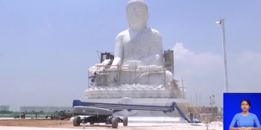 Later, a responsible official explained about the purpose of the construction of Maravijaya Buddha image, step-by-step excavation of the marble rock to be carved into Maravijaya Buddha Image, conveyance of marble rocks, carving marble rocks into parts 1, 2, 3 and 4 of the Buddha statue, the process of lifting the Buddha image by using a steel tower crane, the lifting-up process, step by step placing procedures, the cultivation of flowers and shady trees around Maravijaya Buddha Park and religious building for green and beautiful environs and the construction status of religious buildings.