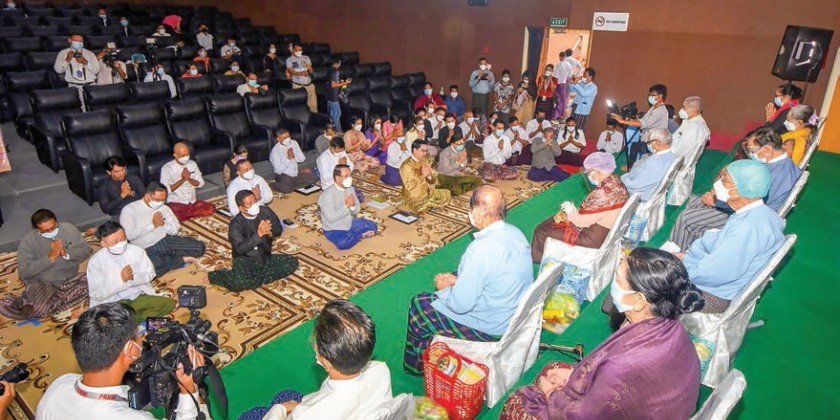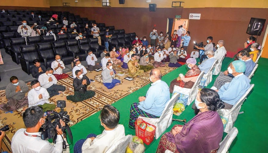 Then, the Union Minister and attendees to the event paid respect to the old film stars and Academy Award winner Sithu Kyi Soe Tun expressed words of thanks. Afterwards, the Union Minister made a speech highlighting the appreciation of the Prime Minister on the people from movie, Thabin, music and literacy fields including his instructions to provide assistance in health and social sectors of artistes.