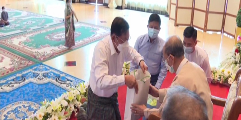 On behalf of the families of the Tatmadaw (Army, Navy and Air), the Senior General and wife, and senior military officers and their wives paid respect to retired senior military officers in line with the Myanmar traditions.