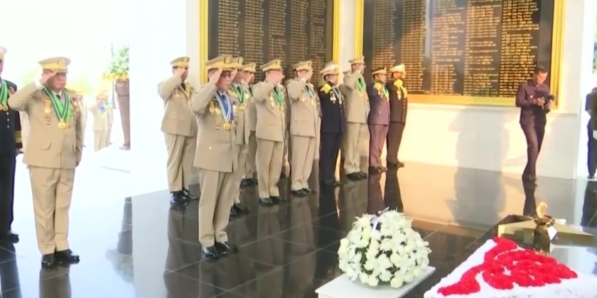 On behalf of the Chairman of the State Security and Peace Commission, Commander-in-Chief of Defence Services Thadoe Maha Thray Sithu Thadoe Thiri Thudhama Min Aung Hlaing, Vice Chairman of the Commission Deputy Commander-in-Chief of Defence Services Vice Senior General Thiri Pyan Chi Maha Thray Sithu Soe Win, attended the event. Together with the senior military officers, the Vice Senior General paid tribute and laid wreath to the fallen heroes who sacrificed their lives during the national defence and security duties.