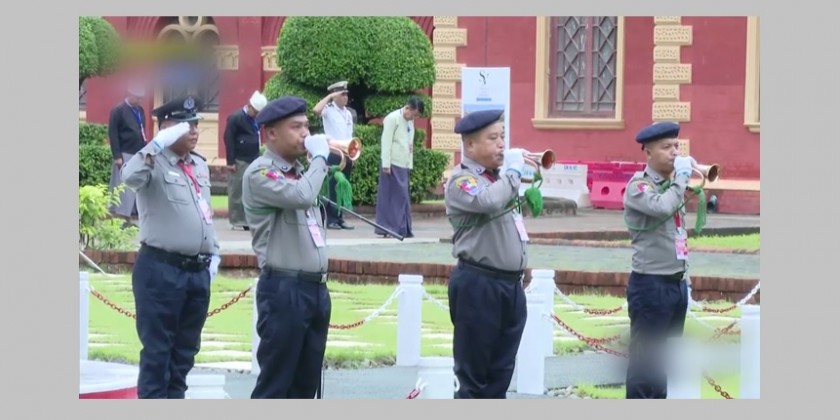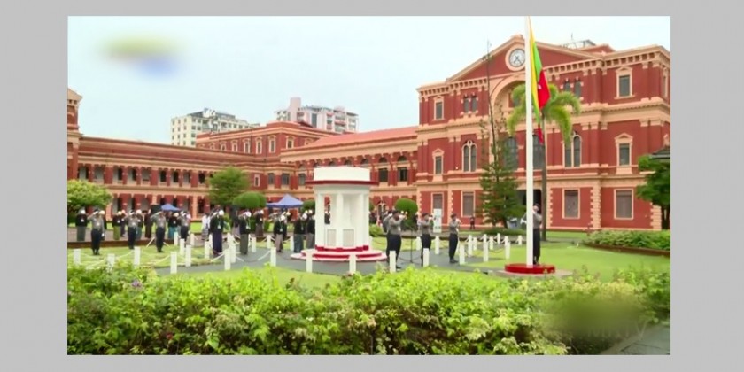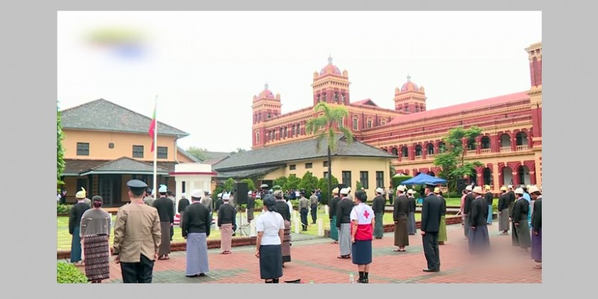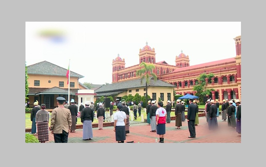 A ceremony for lowering state flag at half-mast was held at the Secretariat (former Ministers’ Office) in Yangon where General Aung San and leaders were assassinated, in observance of the 77th Martyrs’ Day on the morning of 19th July.
