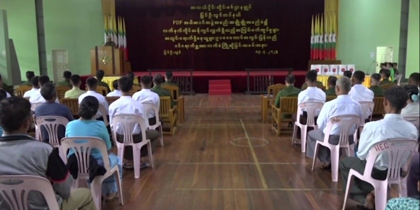 The group turned in 13 guns including 12 Type-81s and one MA-1, over 1,500 ammunition. They were awarded 6.5 million kyats as a reward. The returnees stated they were ordinary villagers forcibly recruited and mistreated by armed groups. They escaped through villages in Naungcho Township and reported to the military near Nyaung Htauk Village. A handover ceremony was held in Pyin Oo Lwin, with military and local officials present.