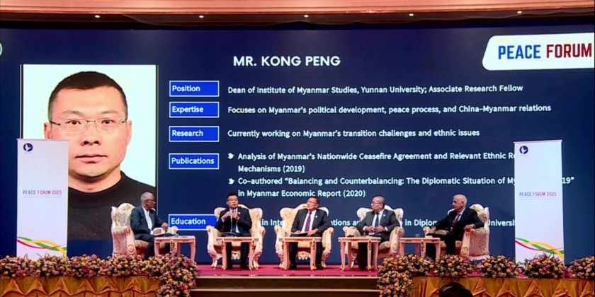 Next, National Solidarity and Peace Negotiation Committee Secretary o Lt-Gen. Min Naing, explained the objectives and programs of the Peace Forum 2025. Following this, foreign expert guests, including Mr. Deng Xijun, Special Envoy for Asian Affairs from the Ministry of Foreign Affairs of the People's Republic of China, Ambassador (Retired) Mr. Jaideep Mazumdar from India, Deputy Minister of Foreign Affairs (Retired) Mr. Sihasak Phuangketkeo from Thailand and Professor Aleksandr Gelyevich Dugin from Russia, delivered speeches on peace. Subsequently, eight foreign expert guests led discussions on topics such as "Opportunities for Post-Election Peacebuilding" and "Processes to Handle Post-Conflict Reconstruction and Disaster Recovery." Various attending representatives then posed questions and offered suggestions, which the discussion leaders clarified and elaborated upon.