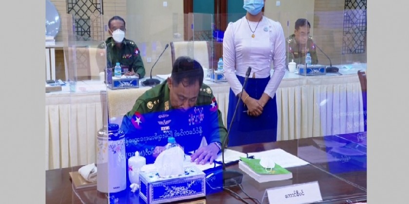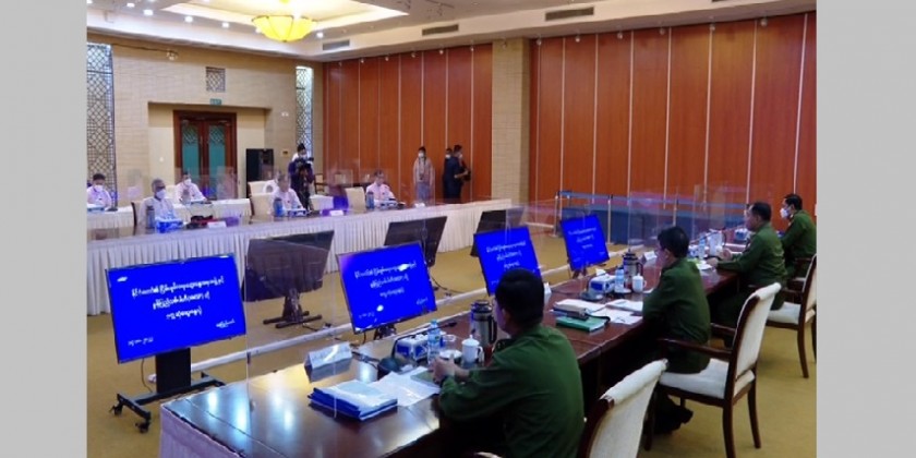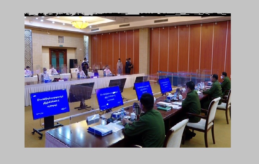 Member of the State Administration Council (SAC), Chairman of the National Solidarity and Peacemaking Negotiation Committee (NSPNC) and leader of the Peace Talks Team Union Minister at the Government Office Lt-Gen Yar Pyae, SAC member Lt-Gen Moe Myint Tun, NSPNC Secretary Lt-Gen Min Naung, Vice-Chairman of the New Mon State Party Nai Aung Min, Joint Secretary Nai Win Hla and Central Executive Committee member Nai Banyar Lei attended the meeting at the National Reconciliation and Peace Center.