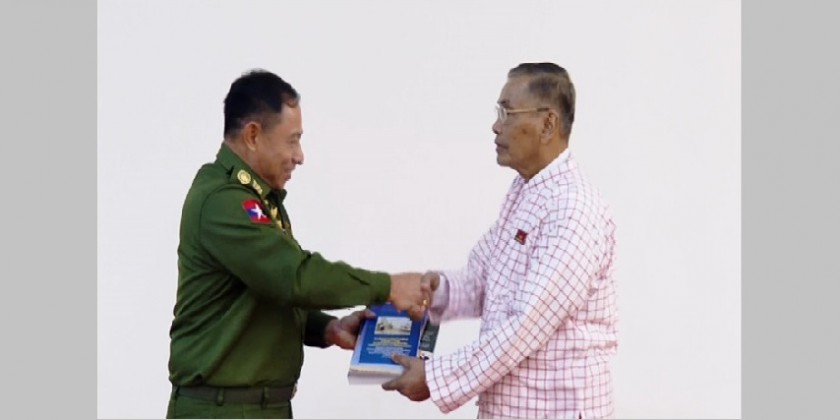 The record book on the SAC’s endeavours for the benefit of the country published by the Ministry of Information and books as well as the MRTV DTH receiver, two feet satellite dish and gifts were presented to the New Mon State Party peace delegation.