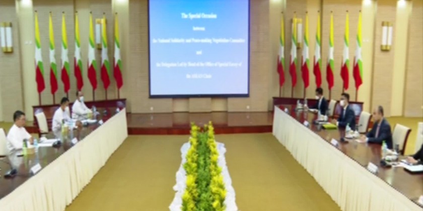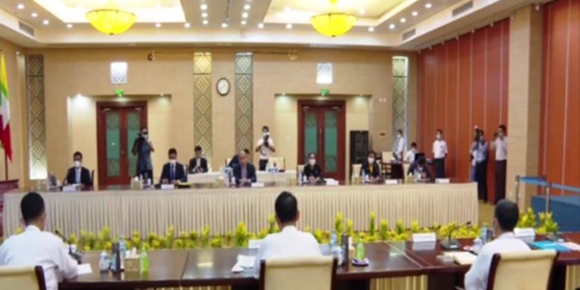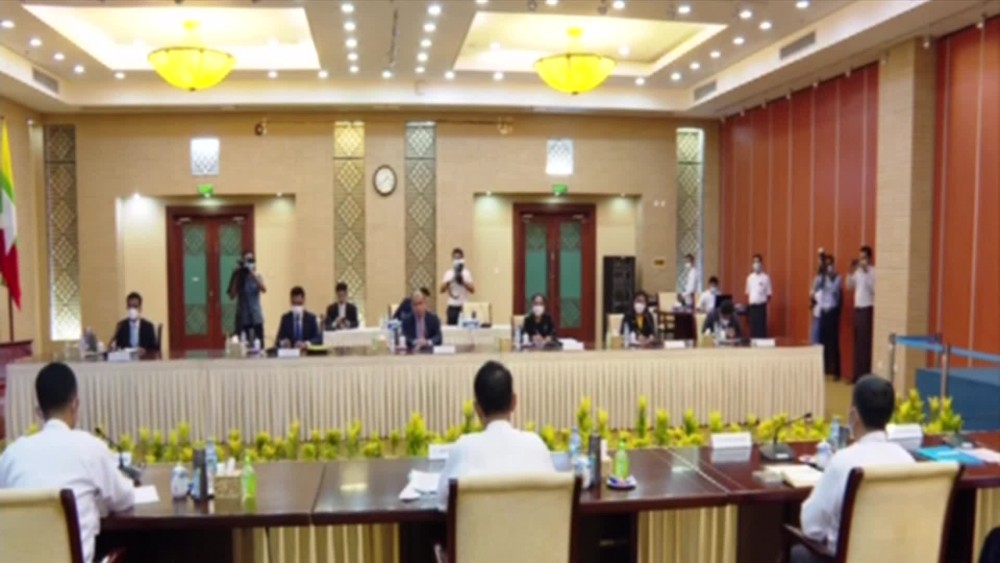 The National Solidarity and Peace-making Negotiation Committee (NSPNC) Secretary Lt-Gen Min Naung received a the Cambodian Delegation led by Secretary of State for the Ministry of Foreign Affairs and International Cooperation and Head of the office of the Special Envoy of the ASEAN Chair Dr. KUNG Phoak.