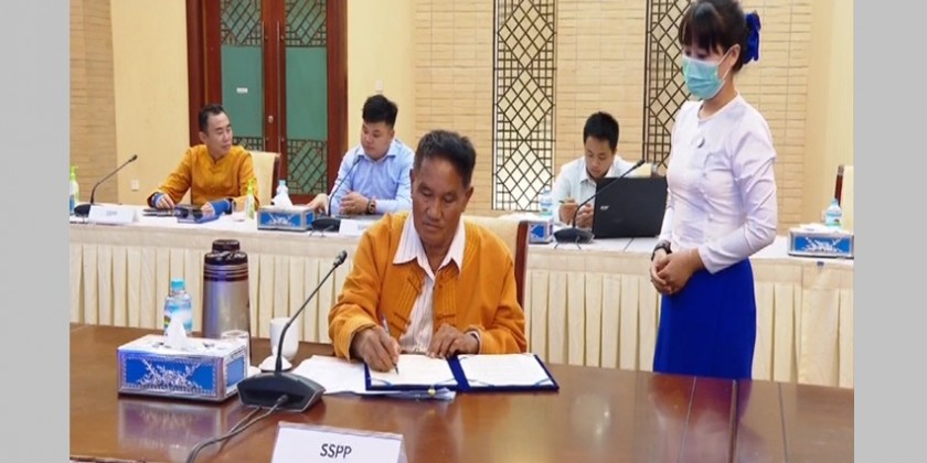 Member of the State Administration Council, Chairman of National Solidarity and Peacemaking Negotiation Committee (NSPNC) Union Minister at the Government Office-1 Lt-Gen Yar Pyae in his capacity as the leader of the Peace Talks Team, SAC Member Lt-Gen Moe Myint Tun, NSPNC Secretary Lt-Gen Min Naung, SSPP Vice-Chairman-1 Sao Khur Tai, Vice-Chairman-2 Sao Khun Seng and Central Committee member Sao Naw Leik attended the meeting.