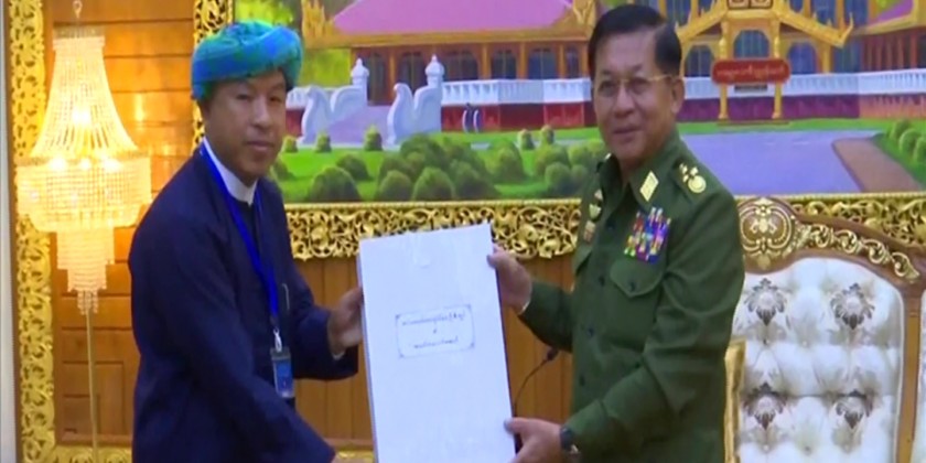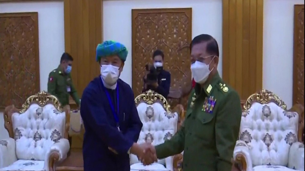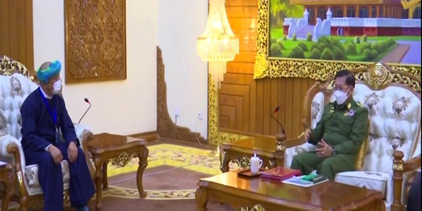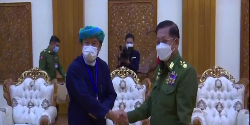 Chairman of the State Administration Council Commander-in-Chief of Defence Services Senior General Min Aung Hlaing received a peace delegation led by Vice-Chair (1) of the Pa-O National Liberation Organization-PNLO at the BayintNaung villa in Nay Pyi Taw on Thursday to discuss peace issues.