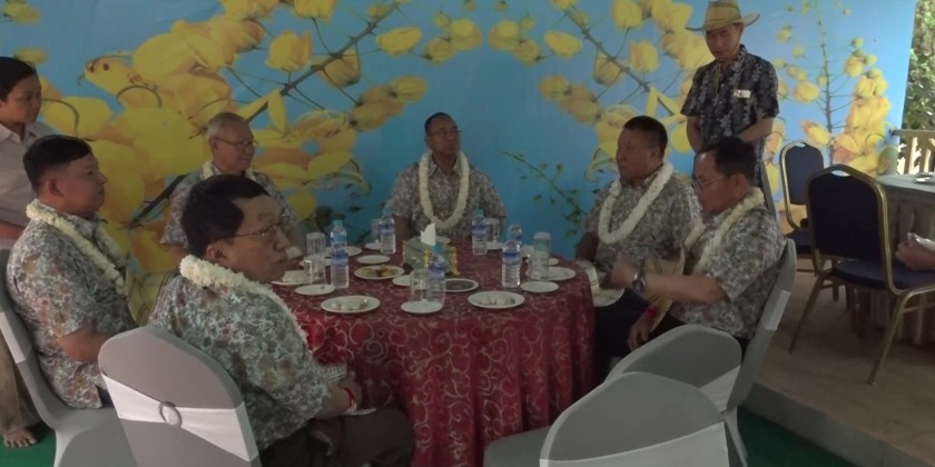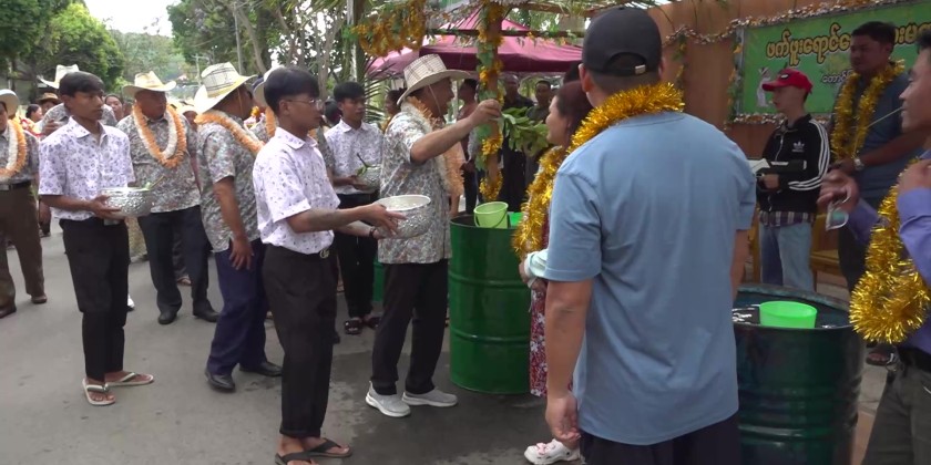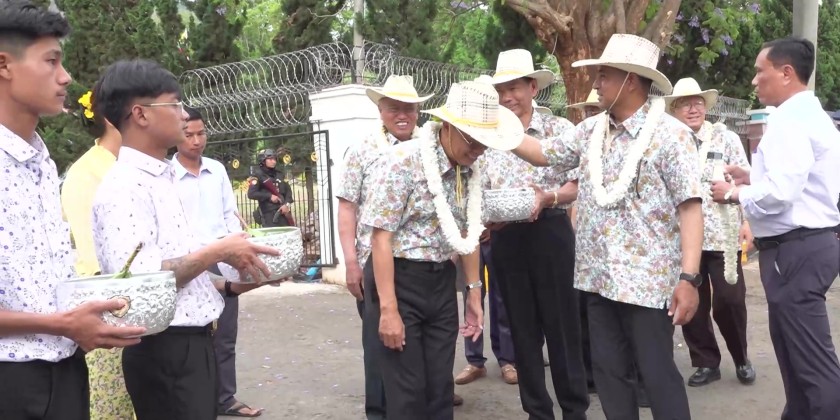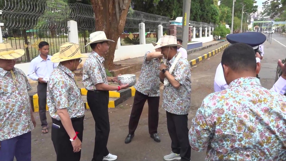 During the traditional Myanmar "Peaceful Thingyan," and "Walking Thingyan" and the offering of charity feast, Shan State Government officials, including the State Chief Minister U Aung Aung, State High Court Chief Justice, state ministers, the State Advocate General, the State Government Secretary, and district and township-level department officials attended. The State Chief Minister and other officials sprinkled scented water using Euginia branches on the attendees.