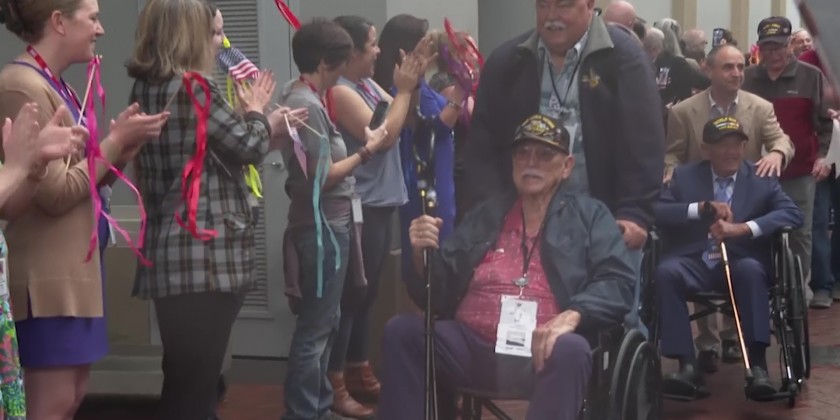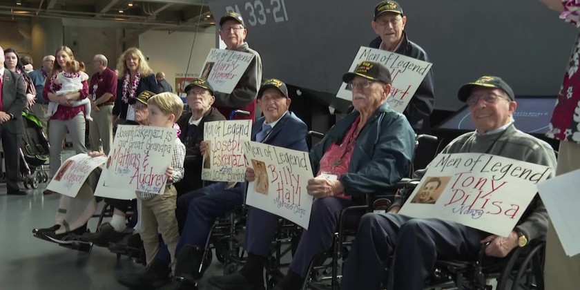 The oldest living survivor of the Japanese Attack on Pearl Harbor in 1941 is marking his 105th birthday at the National World War II Museum in New Orleans. Joseph Eskenazi of Redondo Beach, California, boarded an Amtrak train Friday for the journeys. He arrived at the museum Wednesday morning, posing for pictures with six other World War II veterans amid exhibits of decades old sea vessels and aircraft.