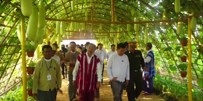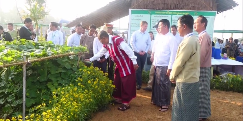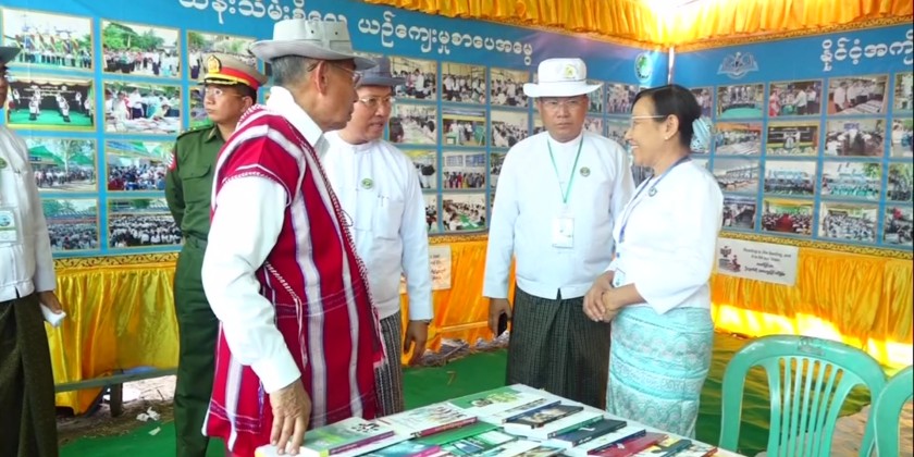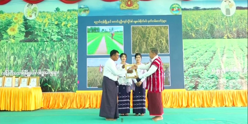 This was followed by rural folk dances, commemorative songs and Kayin ethnic dances performed by students and artists and prize presentation to Agricultural Excellence Award winners. The SAC member and party then inaugurated the commemorative booths, and observed a paddy cultivation demonstration.