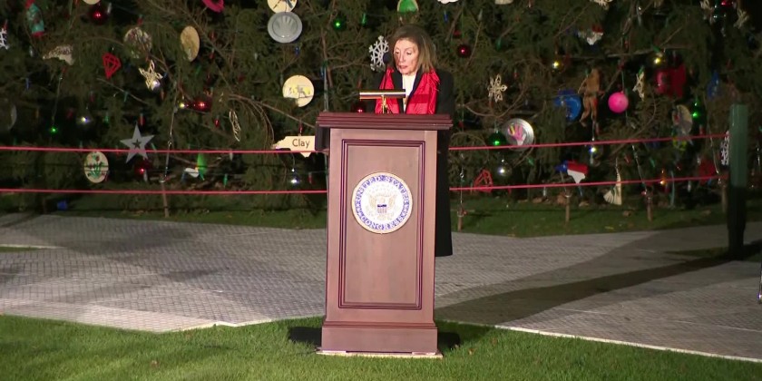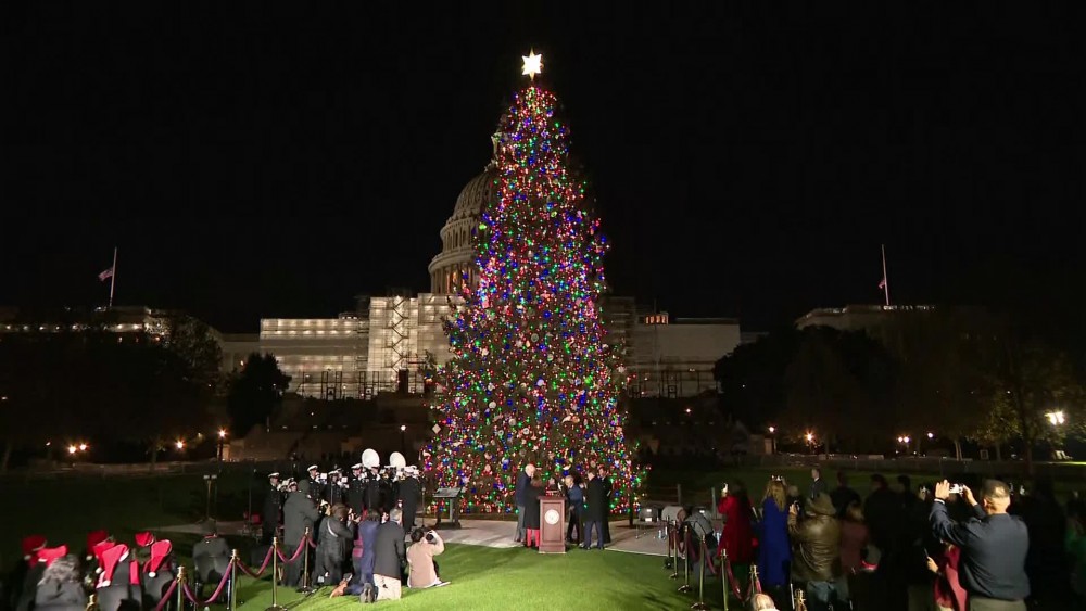 House Speaker Nancy Pelosi, joined by officials from North Carolina, including Gov. Roy Cooper, lit the U.S. Capitol Christmas Tree on the West Lawn of the Capitol.