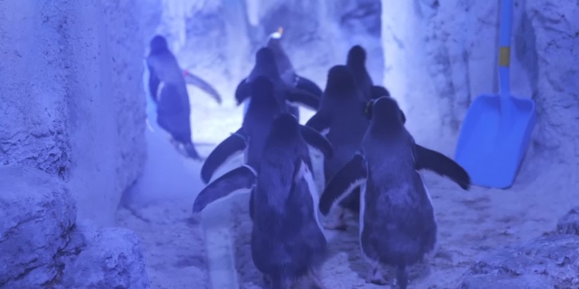 Penguins peck on icy treats at London aquarium