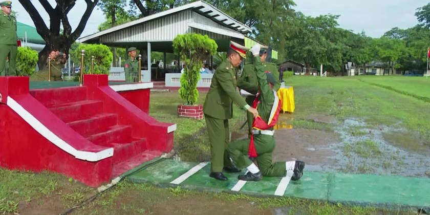 During the ceremony, the trainees paid respect to the Commandant and saluted the state flag. They also pledged their loyalty and took the oath respectively. Next, the Commandant presented awards to the outstanding trainees and gave a speech.
