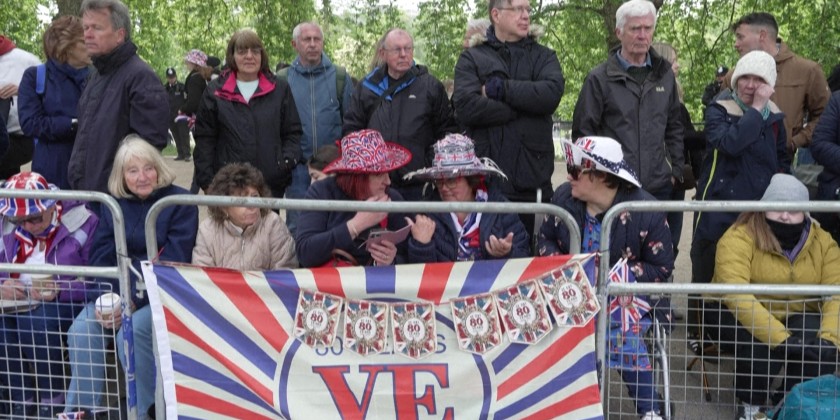 Crowds gathered near Buckingham Palace to mark the 80th anniversary of Victory in Europe Day. The military parade commemorated Germany’s surrender on May 8, 1945, and honored World War II veterans and fallen soldiers. Spectators dressed in red, white, and blue attended in large numbers. Attendees highlighted the importance of being present to experience the atmosphere firsthand.