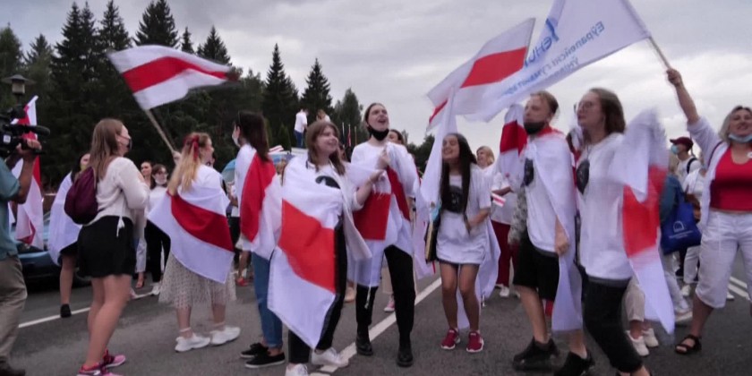 Tens of thousands of Lithuanians linked arms on Sunday in solidarity with the people of neighboring Belarus who have been holding mass protests against authoritarian leader Alexander Lukashenko since a disputed presidential election two weeks ago. The participants formed a human chain stretching 30 kilometers from the Baltic EU state's capital Vilnius to the border with Belarus, with many holding the Belarusian opposition's red-and-white flag as well as the Lithuanian national tricolor. Solidarity rallies were also held in other European countries. Organizers estimated that up to 50,000 people attended the Lithuanian rally.