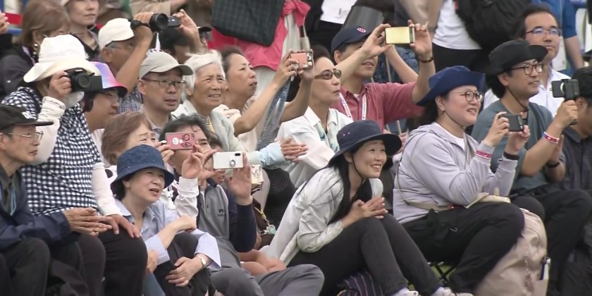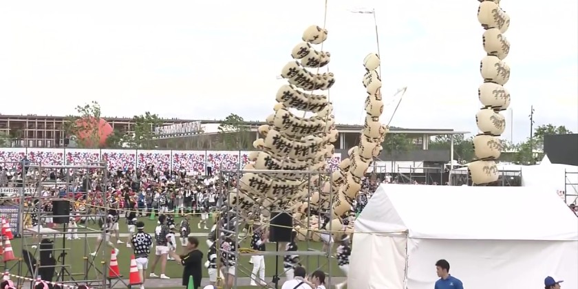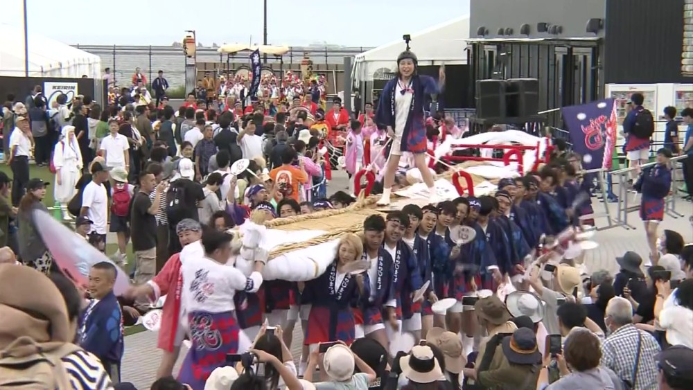 Their performance was also aimed at showing the world how each prefecture has recovered. On Sunday, 550 people representing the six festivals paraded through the arena. Those from Akita Prefecture hoisted 12-meter-long bamboo poles, each weighing 50 kilograms and adorned with paper lanterns.
